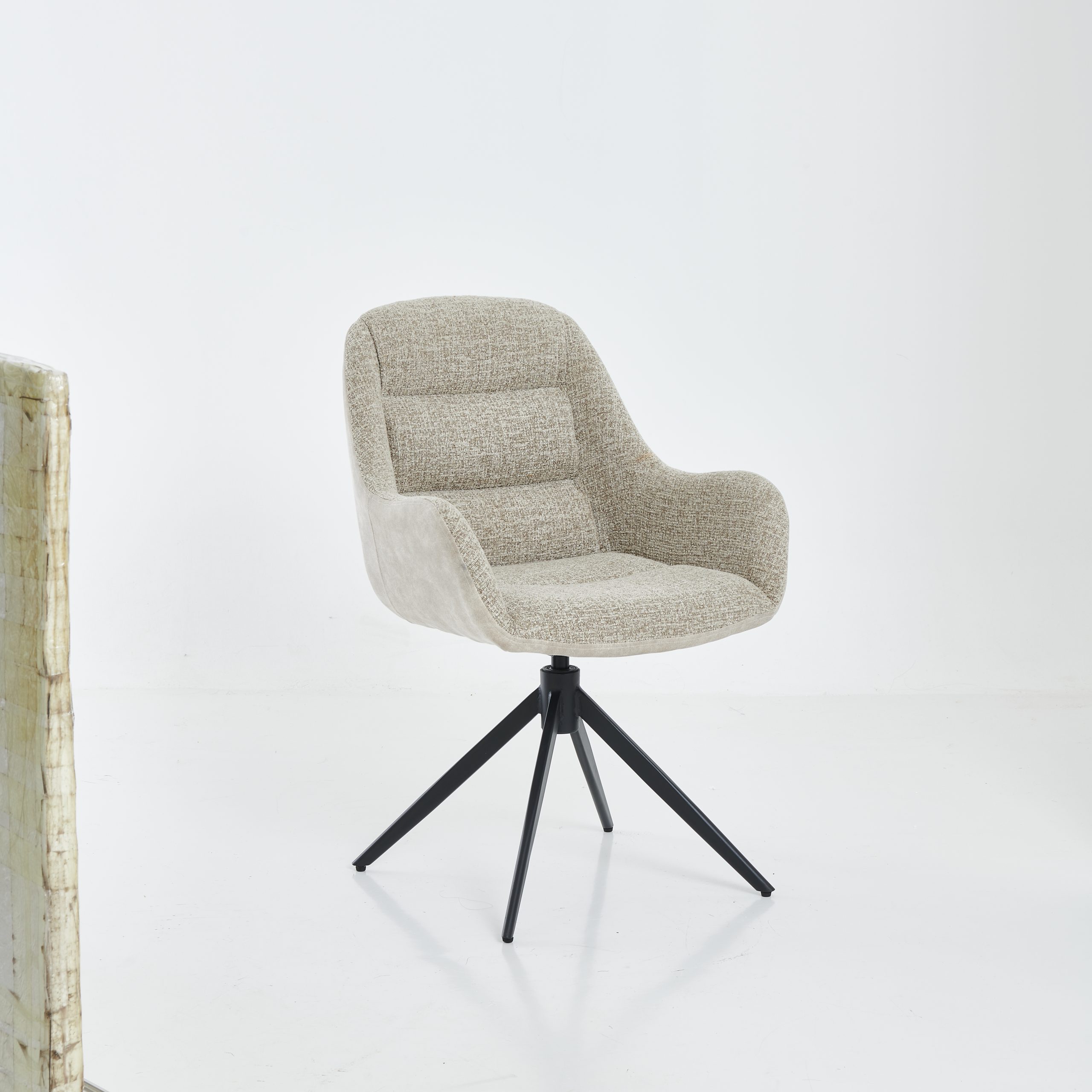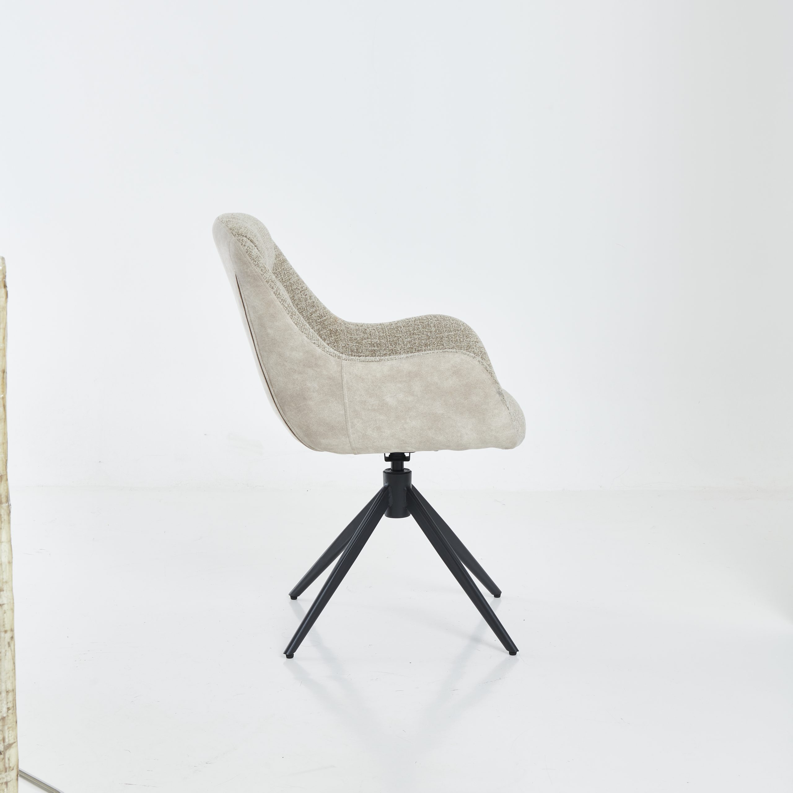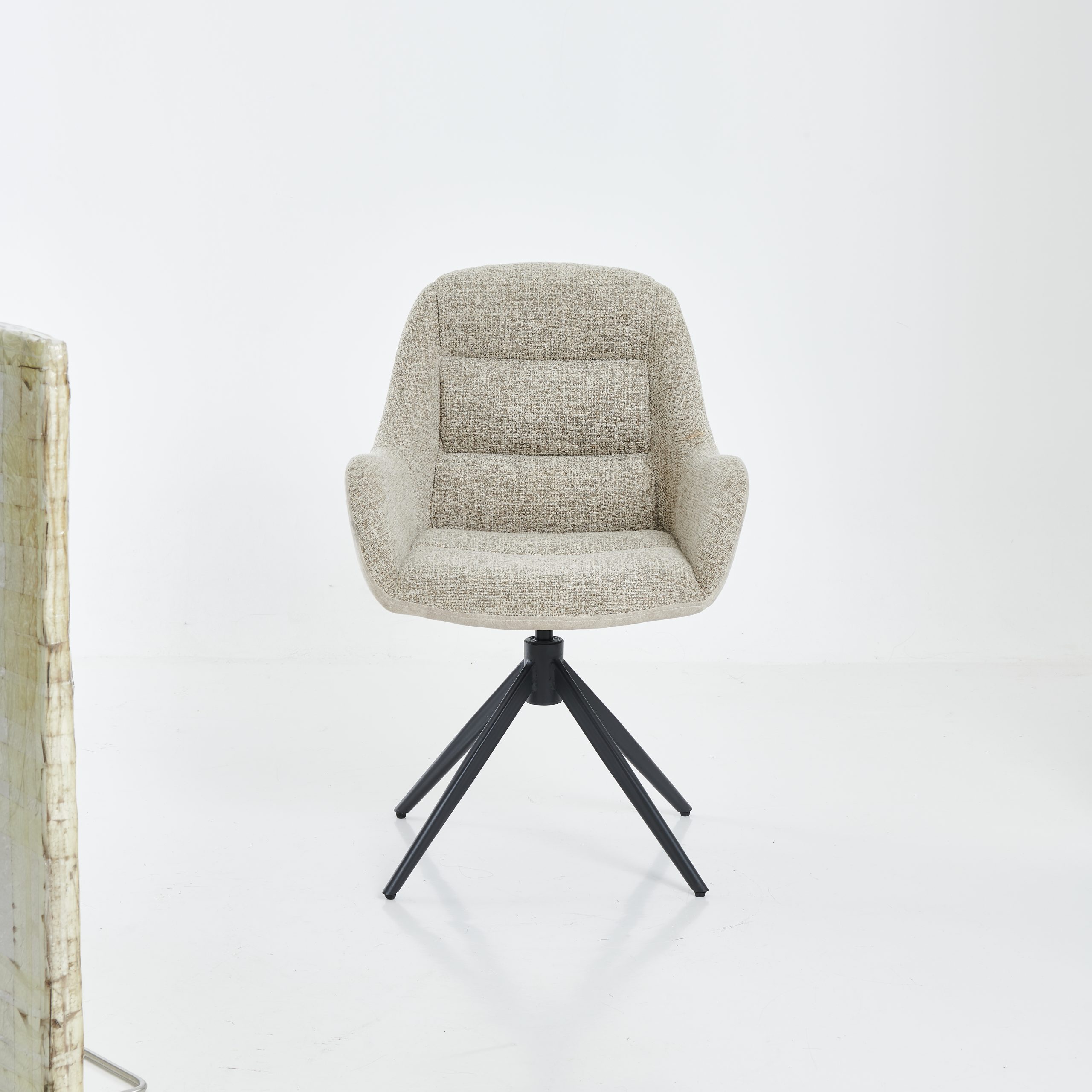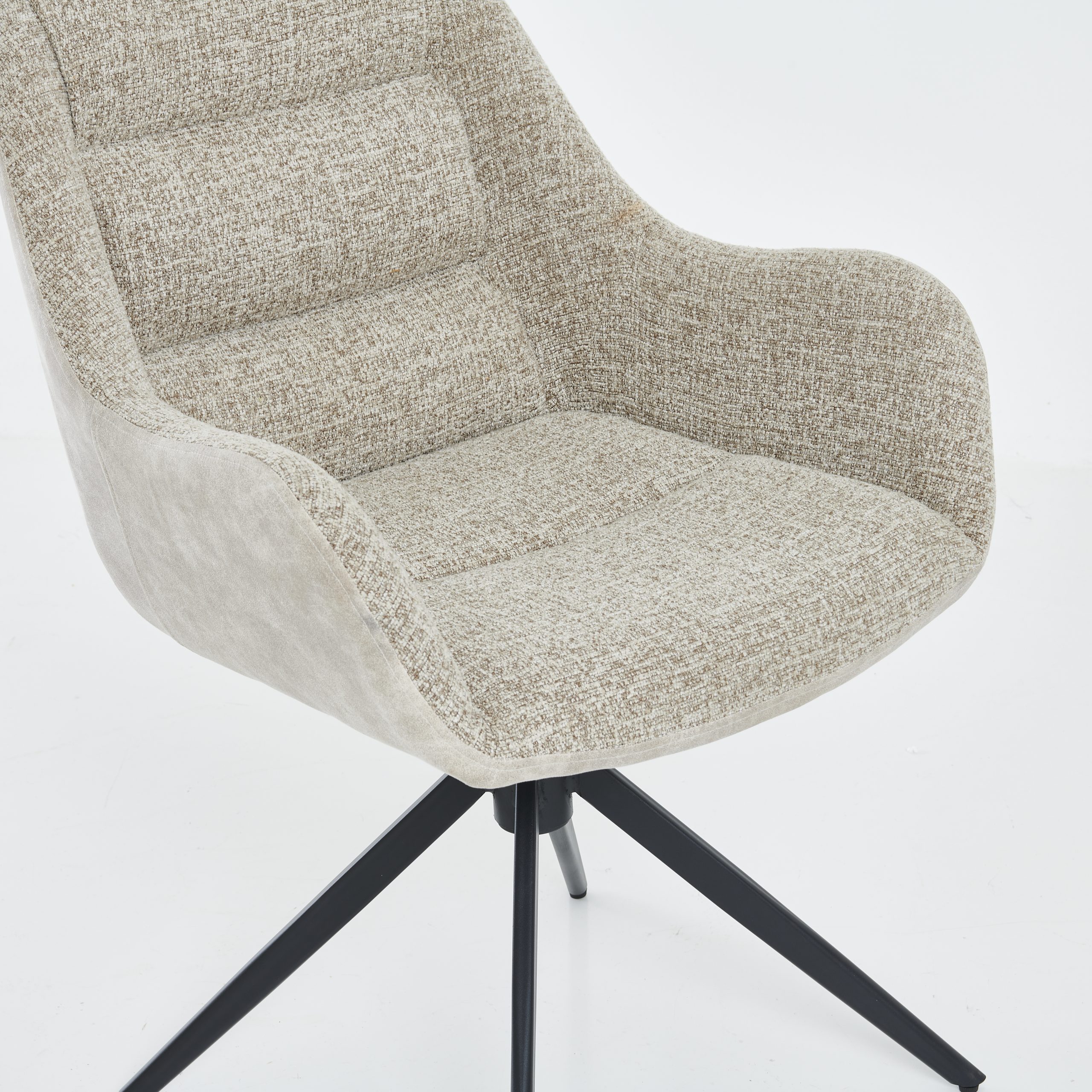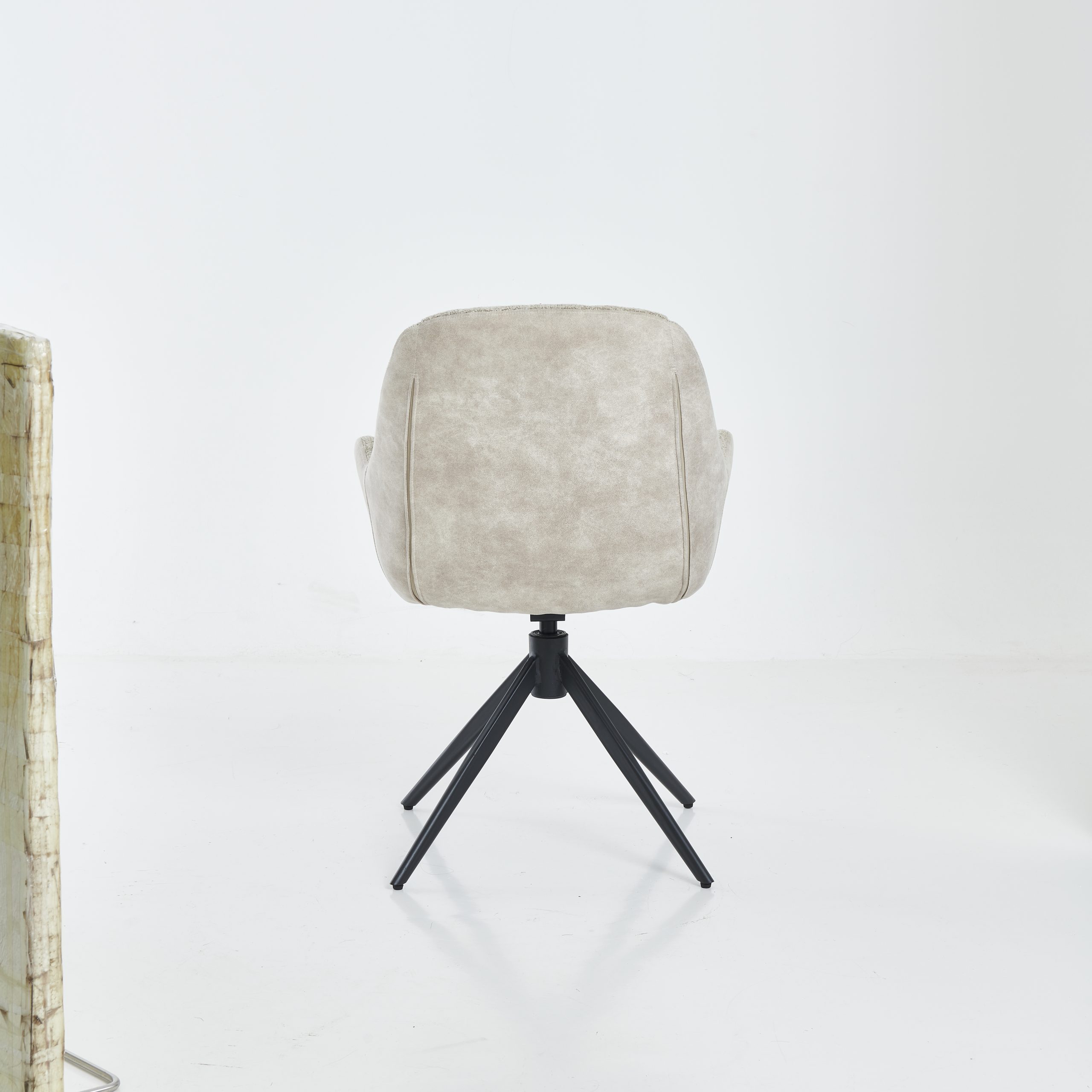 Stabilne crne metalne nogare daju stolici moderan izgled i sigurnost pri sjedenju, dok funkcija rotacije 360° omogućava veću praktičnost i slobodu pokreta. Nosivost stolice je 150 kg.