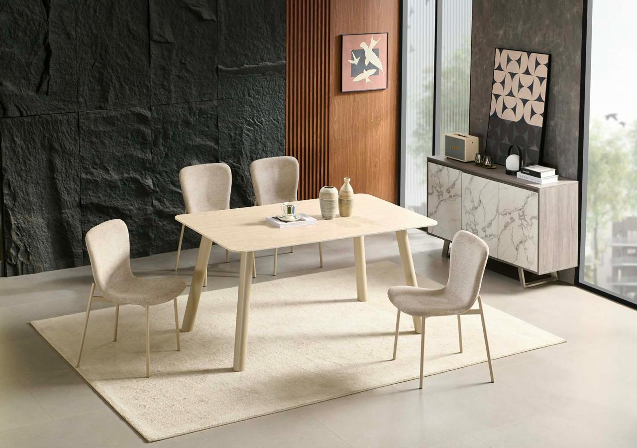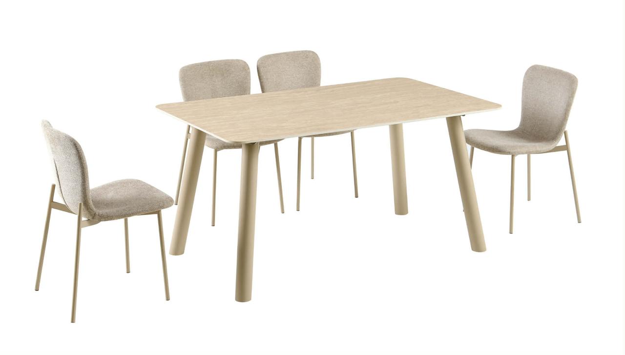 Trpezarijski set OTIS predstavlja savršen izbor za sve koji žele skladan, funkcionalan i estetski privlačan prostor za objedovanje. Ovaj set, koji uključuje stol i 4 udobne stolice, donosi moderan dizajn u toplim, neutralnim tonovima, idealan za savremene domove.
