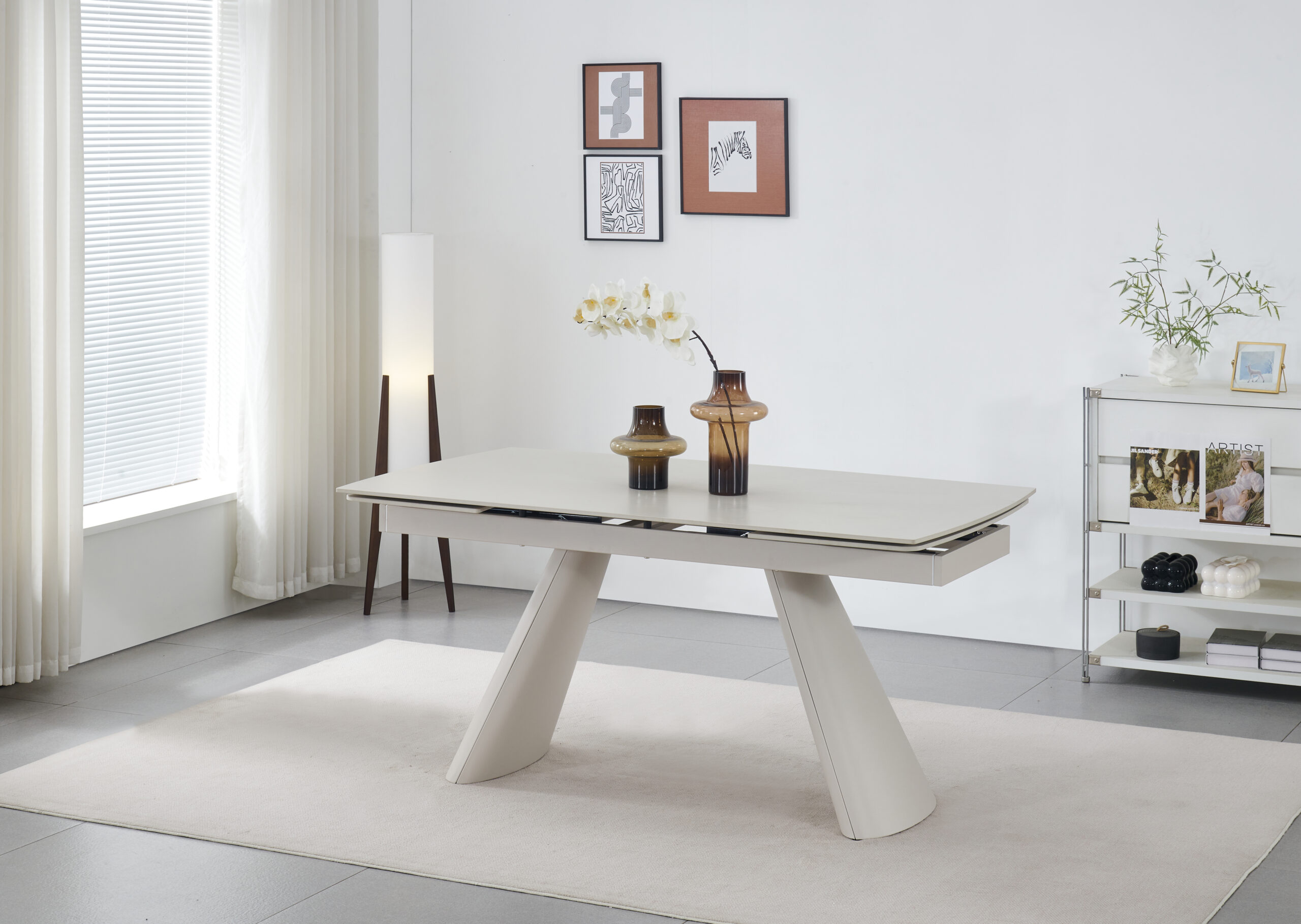 Poseban naglasak stavljen je na ploču od 11 mm keramike, koja osim što pruža elegantan i premium izgled, garantuje i izuzetnu otpornost na ogrebotine, visoke temperature i svakodnevnu upotrebu. Keramička površina je jednostavna za održavanje, što ovaj stol čini idealnim za svakodnevne obroke i druženja.